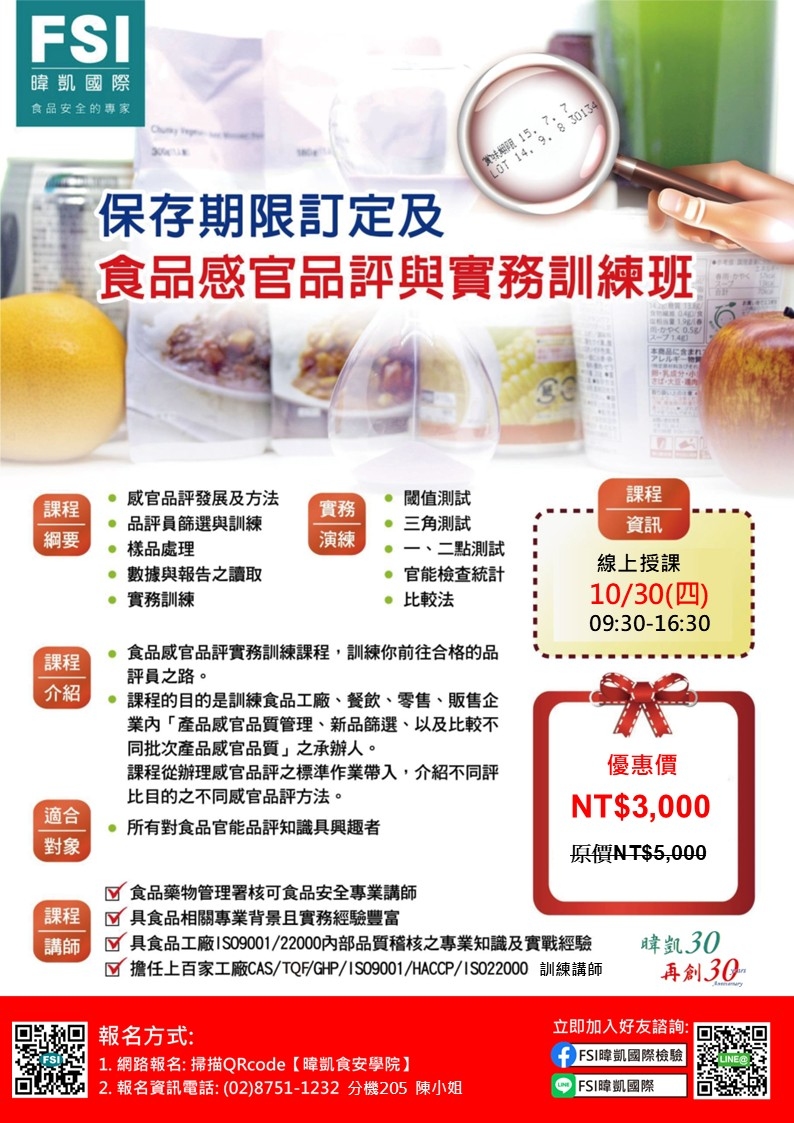 保存期限訂定及食品感官品評與實務訓練班